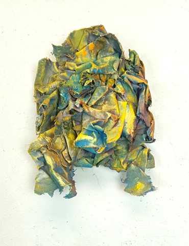 steel rods, spray paint, acrylic paint, synthetic pillow cotton, bed sheet, rabbit skin glue and wax.