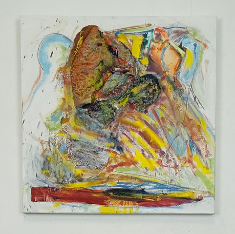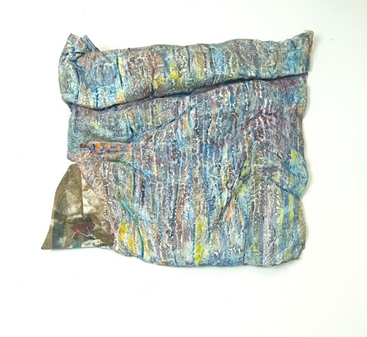 steel rods, spray paint, acrylic paint, synthetic pillow cotton, bed sheet, rabbit skin glue and wax.